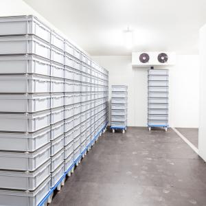 Для сохранения товарных характеристик продукта подходит только контейнерная система хранения. Для удобства работы мы создадим специализированные блоки под ящики. Это сможет дать возможность распределить их по времени сбора, сортам и обеспечить нужную циркуляцию воздуха, чтобы создать оптимальную температуру в промышленной камере для винограда.